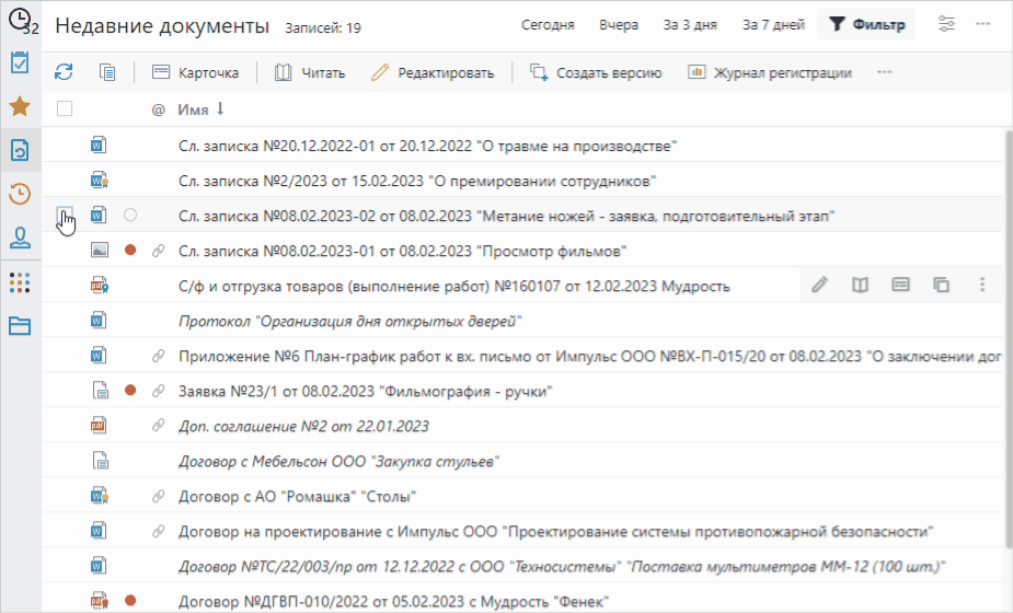 Примечание. Права доступа к папке и задаче настраиваются аналогично документам. Одновременно можно изменить права не более чем на 100 объектов.