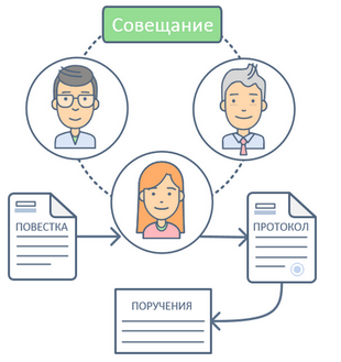 В каждой организации проводятся совещания, на которых сотрудники обмениваются информацией и принимают решения. Сотрудники, ответственные за организацию совещаний, тратят время на рутинные действия по подготовке повесток, оформлению протоколов и выдаче поручений. Это замедляет выполнение принятых решений. Модуль «Совещания» решает эти проблемы, упрощает организацию совещаний и дает возможность: •прямо из карточки совещания создавать повестку и протокол для фиксации принятых решений. Документы связываются с карточкой совещания, благодаря этому в нужный момент все сведения окажутся у вас «под рукой»; •для оформления документов использовать шаблоны, в которых информация о совещании заполняется автоматически. Теперь не нужно вручную заполнять одни и те же сведения в нескольких документах; •за пару кликов передавать решения совещания на исполнение. Система сама создает поручения по протоколу, остается их проверить и отправить в работу. Вручную переносить решения в текст поручений уже не придется; •контролировать текущее состояние работ по совещанию для гарантии своевременного исполнения решений. |