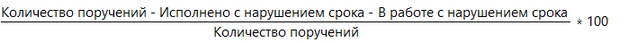 В отчете отображается процент исполнения поручений в срок. Считается следующим образом: