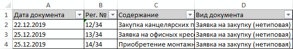 В результате в Microsoft Excel откроется отчет с перечнем внутренних документов, зарегистрированных в заданном периоде: