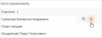 Если после отправки задачи обнаружилось, что документ отправлен сотрудникам, от которых не требуется ознакомление, их можно исключить.