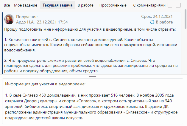 1.Откройте задание на исполнение поручения и ознакомьтесь с текстом поручения: