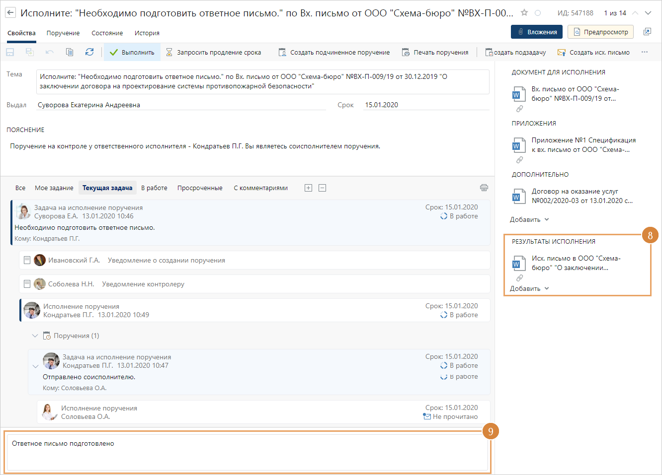 7.Проконтролируйте работу соисполнителей, если они указаны в поручении. После выполнения заданий соисполнителями вы получите задания на приемку работ.