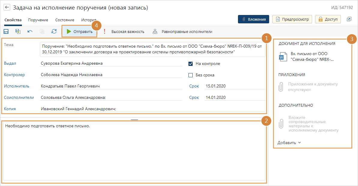 4.Отправьте поручение исполнителям.
