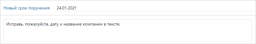 1.В карточке задания проверьте и при необходимости скорректируйте срок поручения, укажите список необходимых доработок: