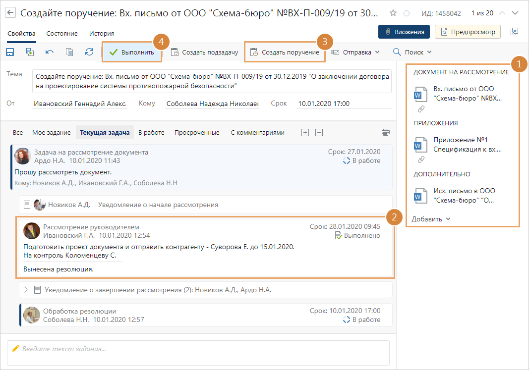 2.Ознакомьтесь с текстом резолюции руководителя.