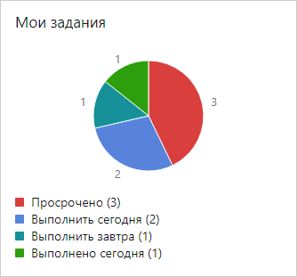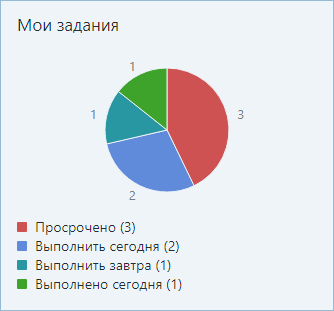 •чтобы открыть список или сформировать отчет, перейдите по ссылке или нажмите на цветную область в виджете. Например, если в виджете «Мои задания» нажать на сектор «Выполнить сегодня», то откроется список заданий текущего сотрудника со сроком «сегодня».
