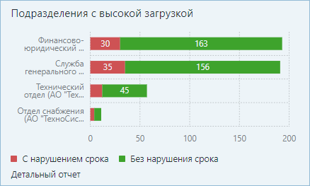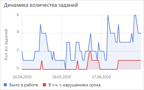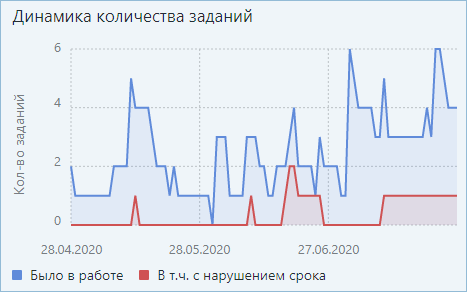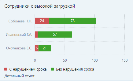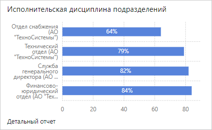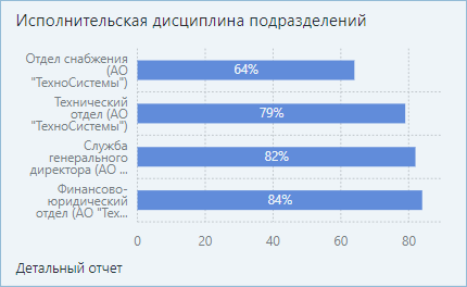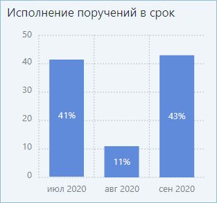 ПРИМЕЧАНИЕ. В компании с территориально-распределенной структурой для сотрудников может быть настроена работа в разных часовых поясах. В этом случае, если сотрудник просматривает свою исполнительскую дисциплину в виджетах, данные отображаются в его часовом поясе. А если руководитель анализирует исполнительскую дисциплину сотрудников, данные отображаются в часовом поясе руководителя. Если у сотрудников показатели отклоняются от нормы, проверьте, в каком часовом поясе они работают.