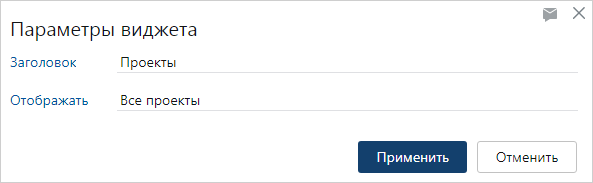 •если вы входите в роль «Администраторы» или «Аудиторы» и хотите, чтобы в виджете отображались все проекты, выберите значение Все проекты.