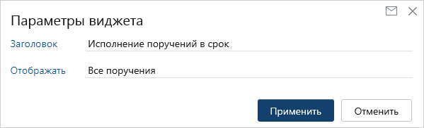 •если вы руководитель подразделения и хотите, чтобы в виджете отображалась информация по поручениям, которые выданы лично вами, выберите значение Выданные мной поручения;