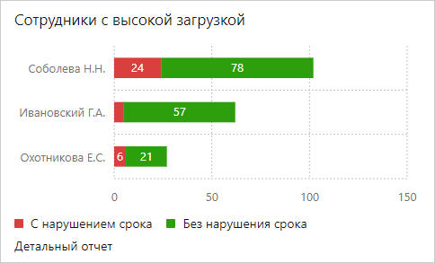 Чтобы открыть полный отчет по исполнительской дисциплине всех сотрудников вашего подразделения или организации, перейдите по ссылке Детальный отчет.