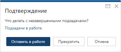 Оставить в работе. Выполнить текущее задание, при этом подзадачи останутся в работе.