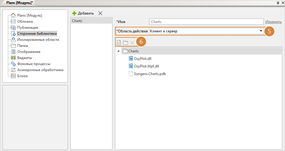 Важно. Сторонняя библиотека может использоваться только в рамках того решения или модуля, в который она добавлена. Чтобы использовать библиотеку в нескольких модулях, добавьте ее в каждый модуль и заполните одинаковым набором файлов и сборок одной версии.