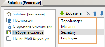 •создавать свои наборы, содержащие существующие виджеты базовых решений, виджеты типов сущностей и папок, а также виджеты, разработанные вами в новом решении;