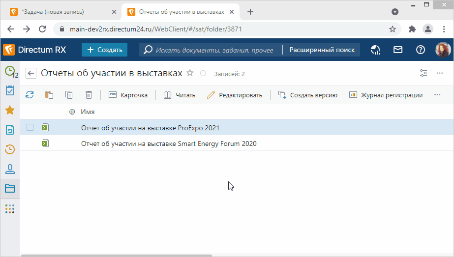 Отправка вложением в задачу. Выделите объект из списка и вызовите контекстное меню правой кнопкой мыши. Выберите последовательно пункт Отправить и один из вариантов отправки объекта вложением в задачу. Список доступных действий зависит от типа выбранного объекта: