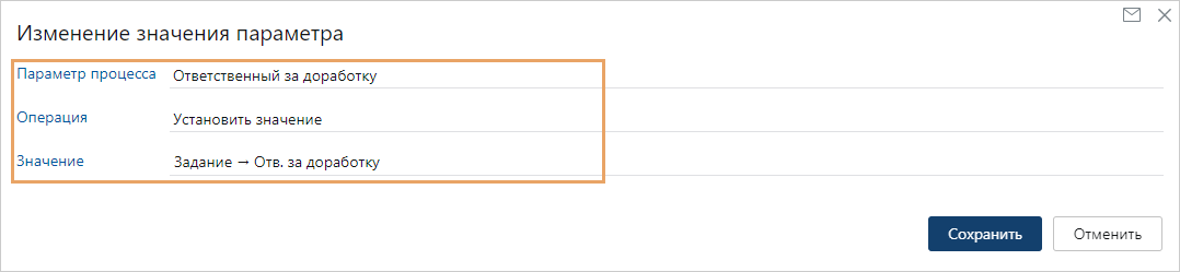 Для параметра процесса Ответственный за доработку: