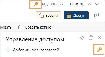 •кнопка на панели «Управление доступом» принимает вид