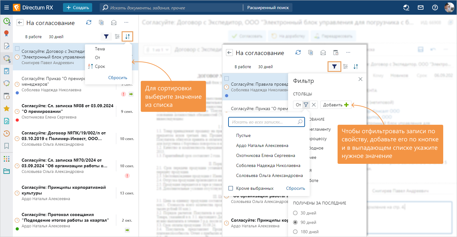 Записи в компактном представлении содержат те же данные, что и в обычном списке, но по ширине занимают меньше места на экране. Также в списке отображается карточка объекта, и ее можно редактировать. Например, вы можете использовать такой интерфейс для обработки потоков заданий.