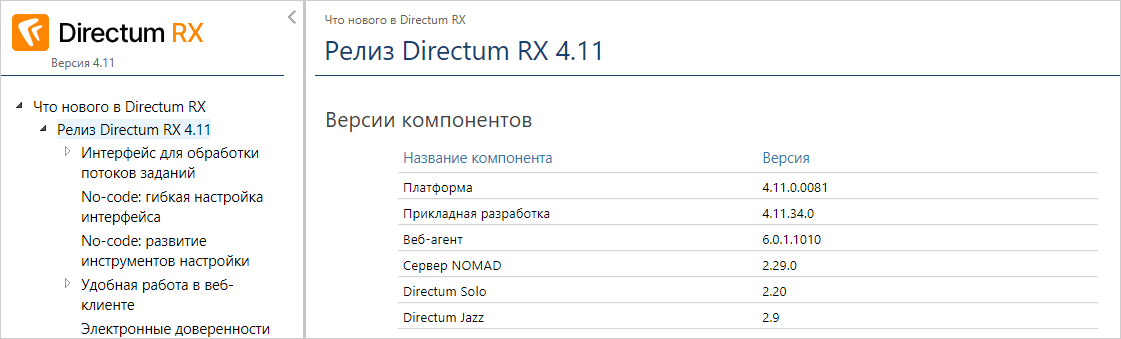 1.Изучать новинки Directum RX стало ещё удобнее: новые возможности сгруппированы по выпуску и обновлениям версии. Для каждого обновления указаны версии компонентов системы: