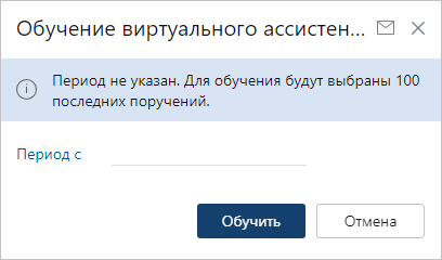 Параметры можно не задавать, в таком случае система обучит действующих виртуальных помощников на 100 последних созданных поручениях.