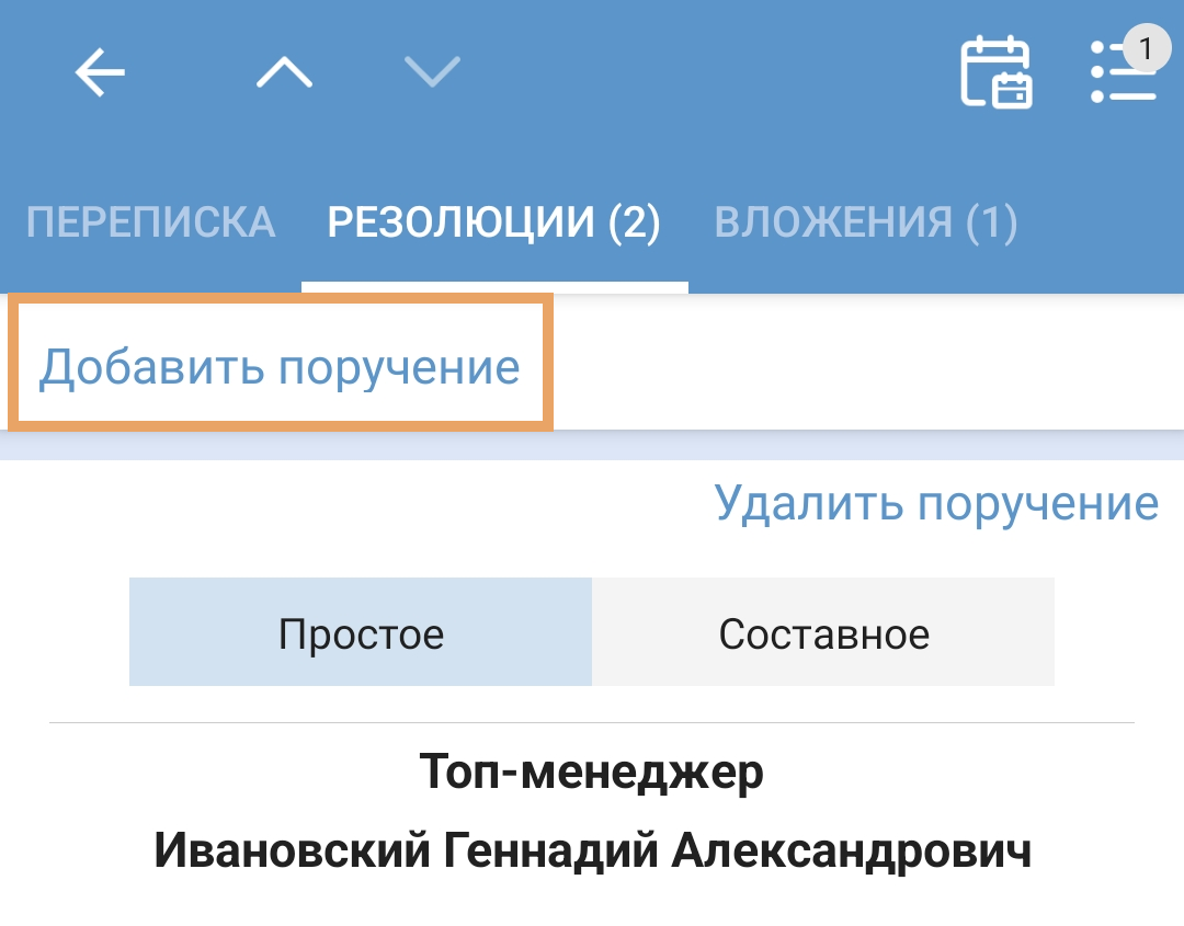 1.Чтобы руководителям стало удобнее добавлять поручения в заданиях на рассмотрение документа, соответствующая кнопка перенесена со вкладки «Вложения» на вкладку «Резолюция»: