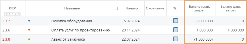 Чтобы отразить движение средств при выполнении операции, руководитель проекта выбирает одно из направлений: