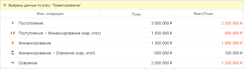 •суммы плановых и фактических значений финансовых операций по каждому направлению;