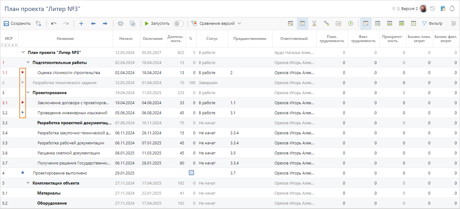 Теперь в табличной части плана проекта можно увидеть, по каким этапам отправлена задача на выполнение и в каком состоянии она находится. Это позволяет руководителю наглядно оценить статус работ и принять меры, например если задача просрочена.